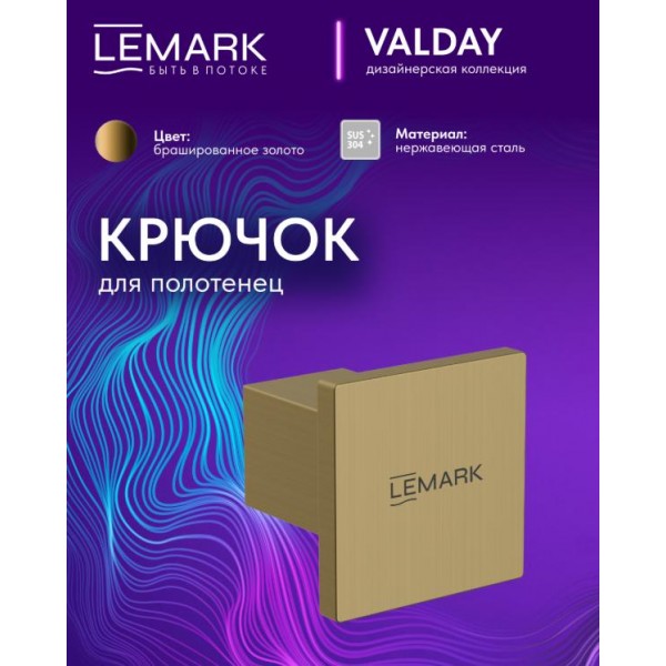 Крючок для полотенец Lemark Валдай_Valday, сталь, брашированное золото