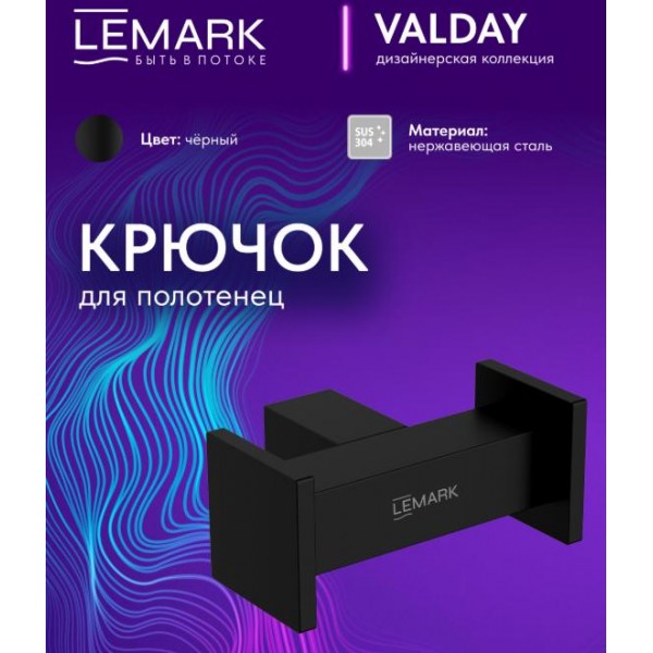 Крючок для полотенец Lemark Валдай_Valday, сталь, матовый черный