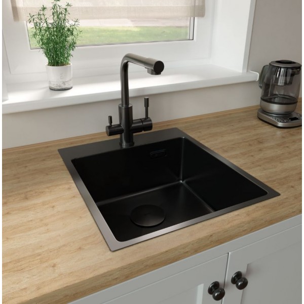 Устойчивость к коррозии. Нержавеющая сталь SUS 304 характеризуется наличием 18% хрома и 10% никеля, что гарантирует ей высочайшую устойчивость к коррозии. PVD-покрытие защищает мойку от воздействия влаги и агрессивных веществ, что особенно важно для кухонной мойки.