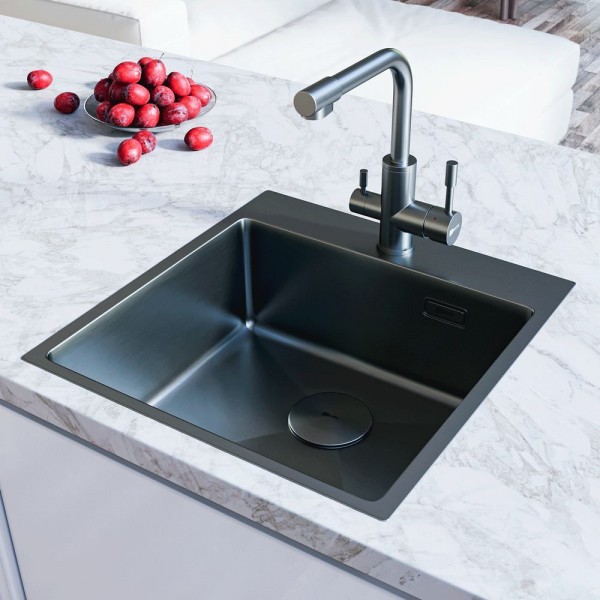 Прочность и долговечность. PVD-покрытие, как и нержавеющая сталь, устойчиво к механическим повреждениям и перепадам температуры и гарантирует длительное сохранение характеристик и первоначального внешнего вида. Покрытие интегрируется в основной материал на молекулярном уровне, и в случае возникновения царапин на изделии, они будут иметь тот же оттенок, что и ваша кухонная мойка, а при ударе объектов о поверхность не возникнут трещины.